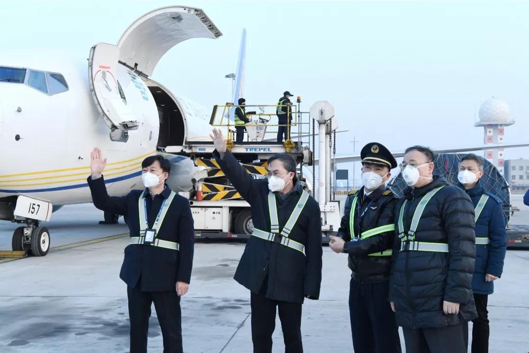1月31日清晨,國家郵政局黨組書記、局長馬軍勝,中國郵政集團(tuán)有限公司黨組書記、董事長劉愛力一行,來到北京首都機(jī)場郵航飛機(jī)停機(jī)位,看望慰問即將執(zhí)飛北京至武漢防疫救援物資專機(jī)的飛行機(jī)組和保障人員,向他們致以新春問候,對他們執(zhí)飛專機(jī)運(yùn)輸防疫物資表示衷心感謝,希望他們切實(shí)做好自身防護(hù),安全執(zhí)飛專機(jī),繼續(xù)為助力打贏疫情防控阻擊戰(zhàn)作出積極貢獻(xiàn),切實(shí)做到使命必達(dá),讓黨和人民放心,充分彰顯行業(yè)“國家隊”的使命擔(dān)當(dāng)。