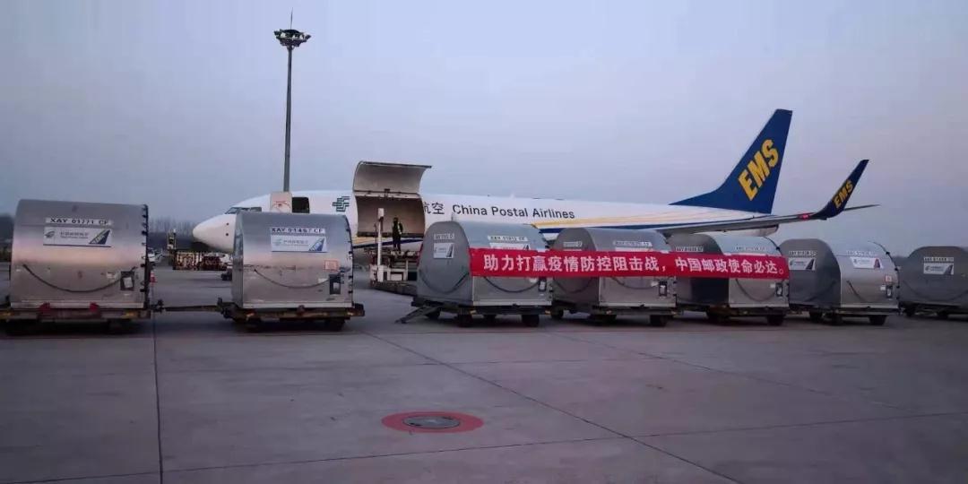 自中國郵政緊急啟動防疫救援物資綠色通道后,截至目前,中國郵政防疫物資寄遞專機(jī)已累計飛行五架次,將共計50多噸的防疫醫(yī)療救援物資在第一時間從廣州、上海、北京運抵武漢。