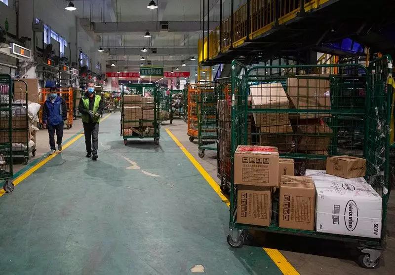2月1日下午,武漢郵區(qū)中心局郵件處理中心,一名工作人員將一批捐贈(zèng)燈具裝上郵車,準(zhǔn)備第二天發(fā)往火神山醫(yī)院。當(dāng)天,火神山醫(yī)院施工人員正不眠不休地趕工,確保在2月3日交付使用。