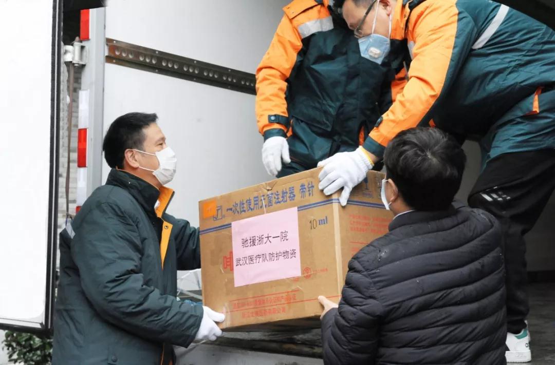 2月6日下午,一輛郵車開(kāi)進(jìn)了浙江大學(xué)醫(yī)學(xué)院附屬第一醫(yī)院,停在了17號(hào)樓前,郵政和醫(yī)院雙方的工作人員冒著淅瀝的小雨小心翼翼地將裝著醫(yī)療耗材的一個(gè)個(gè)大箱子搬進(jìn)車廂。浙江省郵政分公司黨委書記、總經(jīng)理陳清,浙大一院常務(wù)副院長(zhǎng)裘云慶、黨委副書記邵浙新均到達(dá)了現(xiàn)場(chǎng)。