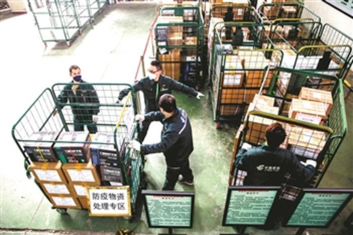 北京郵區(qū)中心局作為郵件集散地和分揀處理運輸中心,為了讓捐贈物資快速寄達武漢,對防疫物資采取專人接收、優(yōu)先處理的方案,并開通綠色通道,保障捐贈物資全程單獨處理,內(nèi)部處理環(huán)節(jié)提速兩個多小時。