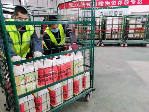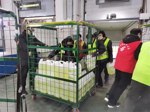 11點20分,一輛郵政卡車開了過來,車里裝載的一家愛心企業(yè)捐贈的1700桶84消毒液和100箱榨菜。這家企業(yè)于2月5日與北京郵區(qū)中心局取得聯(lián)系,郵局6日上午派專人專車將這批捐贈物資運到郵件綜合處理中心。東西運到,十幾名工人立即停下手里的活,跑到專用通道前,麻利地卸下貨物,暫放到捐贈物資存放專區(qū)。明天一早,這批物資就將裝車發(fā)往武漢。