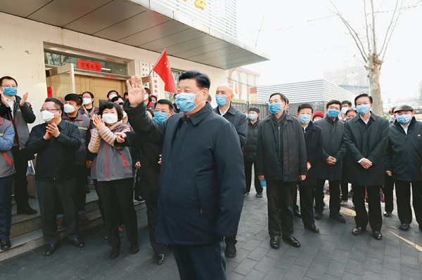 2020年2月10日,中共中央總書記、國家主席、中央軍委主席習近平在北京調研指導新冠肺炎疫情防控工作。這是習近平來到朝陽區(qū)安貞街道安華里社區(qū),了解基層一線疫情聯(lián)防聯(lián)控情況。 新華社記者 鞠鵬/攝