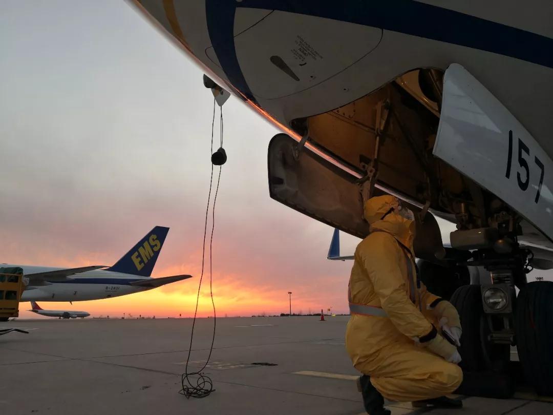郵航武漢駐站機(jī)務(wù)對(duì)飛機(jī)進(jìn)行過(guò)站檢查