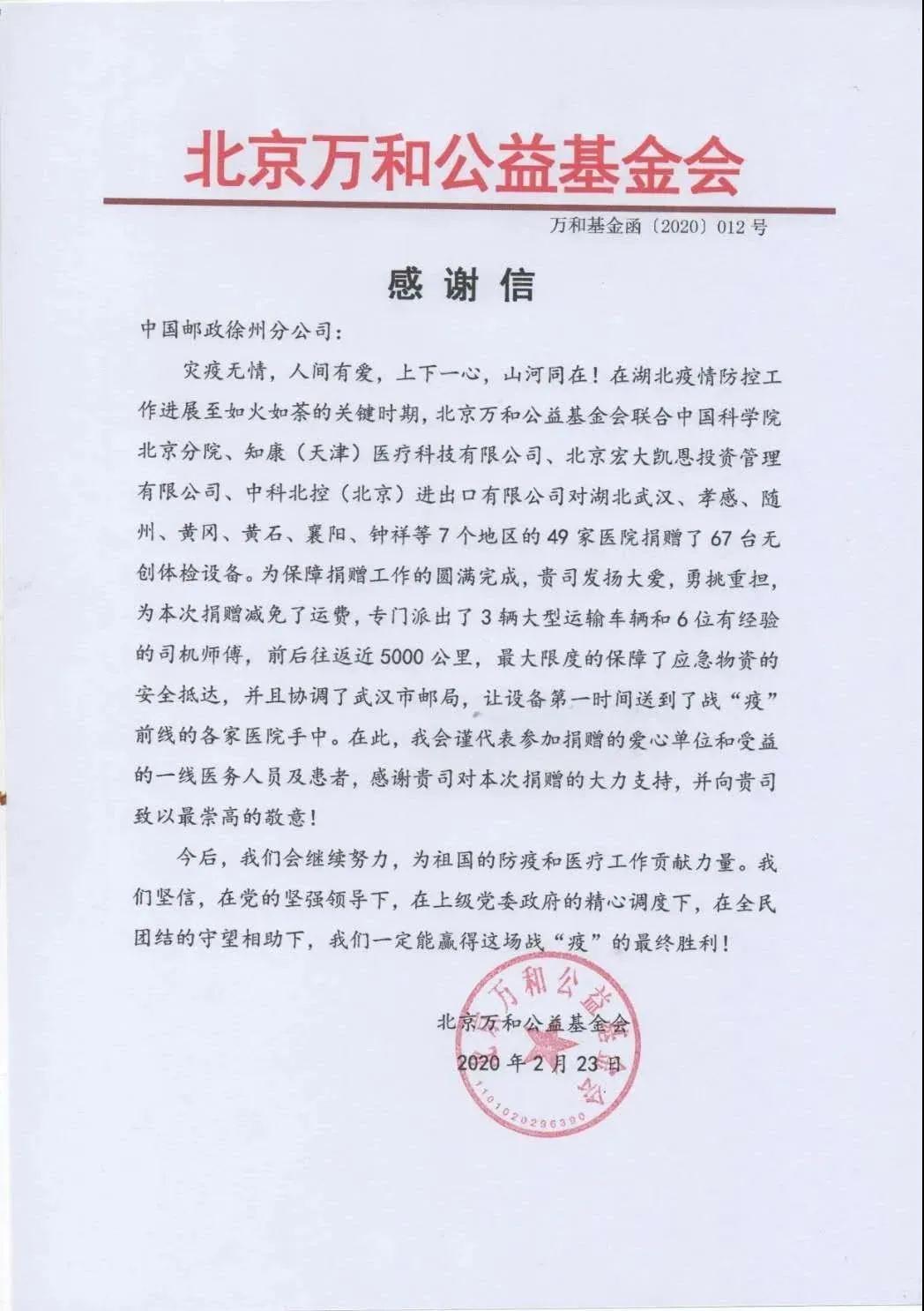 由于設(shè)備昂貴,捐贈企業(yè)還是表達(dá)了自己的擔(dān)憂,特意派人前來徐州郵政協(xié)調(diào)對接。劉永紅堅定地強(qiáng)調(diào):“我們會按照集團(tuán)公司保障綠色通道順暢的明確要求,嚴(yán)格落實交通運輸部的緊急任務(wù)指令,請不用擔(dān)心!”這才打消了捐贈企業(yè)的疑慮。