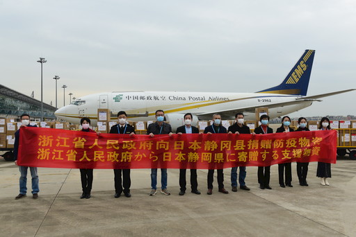 3月12日11時(shí),浙江省政府向日本和韓國(guó)捐贈(zèng)防疫物資的交接啟運(yùn)儀式在義烏機(jī)場(chǎng)舉行。浙江省政府外事辦公室、省經(jīng)信廳將物資交付浙江省郵政分公司承運(yùn)。此次捐贈(zèng)物資包含了口罩、防護(hù)服、護(hù)目鏡等共計(jì)近千箱防疫物資,其中捐贈(zèng)日本的物資將由中國(guó)郵政“義烏—大阪”郵航貨運(yùn)包機(jī)直航送達(dá)。自2月6日浙江省分公司開通“義烏—大阪”往返郵航貨運(yùn)包機(jī)海外捐贈(zèng)“綠色通道”以來,已完成多批次防疫物資的運(yùn)輸工作,使義烏成為防疫物資捐贈(zèng)和運(yùn)輸?shù)囊粋€(gè)重要口岸?!鯀栭?nbsp; 攝影報(bào)道