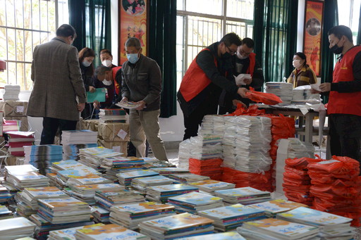抗擊疫情期間,浙江省麗水市云和縣郵政寄遞事業(yè)部幫助云和縣教育局解決了當(dāng)?shù)?8所學(xué)校教材寄遞的難題。圖為云和縣分公司員工在新華書店倉(cāng)庫(kù)打包教材?!鯊堨o雯 攝影報(bào)道