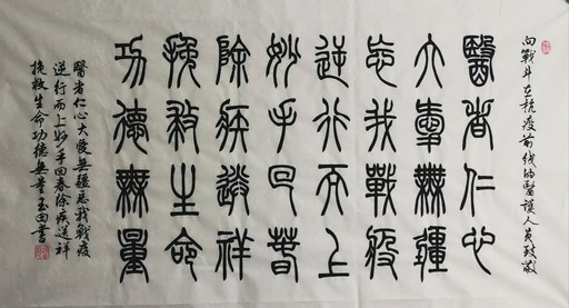 郵友們都知道,蕭老師不僅畫畫得好,字也寫得特別棒,楷、行、草、隸、篆及金文無所不能。2014年發(fā)行的《元曲》特種郵票,6枚郵票上面出現(xiàn)的代表性名句,均是蕭老師自己用6種書體寫就。這次蕭老師運用篆體寫下的抗疫書法作品,第一幅內(nèi)容為“眾志成城,抗擊疫情。山河無恙,百姓康寧”;第二幅為“萬眾一心,共克時艱,抗擊疫情,國泰民安”;第三幅為“醫(yī)者仁心,大愛無疆。忘我戰(zhàn)‘疫’,逆行而上。妙手回春,除疾送祥。挽救生命,功德無量”,上款為“向戰(zhàn)斗在抗疫前線的醫(yī)護(hù)人員致敬!”可謂字字見功力,幅幅寄深情。