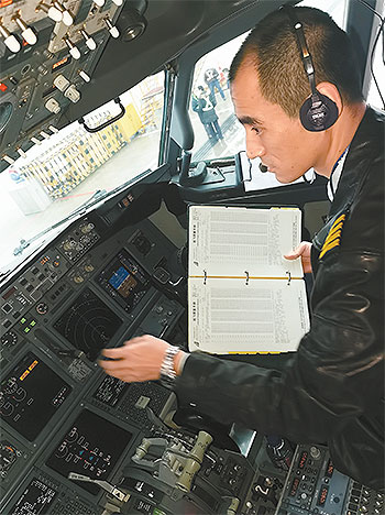 每次起飛前,王曉輝必做的事就是持手冊(cè)逐項(xiàng)對(duì)照檢查,確保各儀表及設(shè)備達(dá)到飛行要求。
