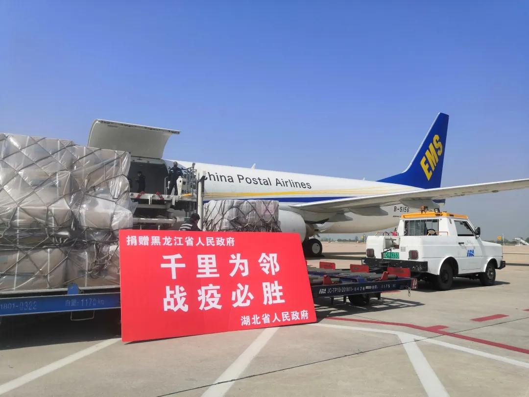 4月15日下午,湖北省捐贈黑龍江省的近3000萬元醫(yī)用防護(hù)物資和醫(yī)療救治設(shè)備,通過CF9111(波音737-800)、CF9116(波音757-200)、CF9128(波音737-300)三架郵航包機(jī)從武漢天河機(jī)場相繼運(yùn)抵哈爾濱、牡丹江機(jī)場。作為首家執(zhí)行向綏芬河運(yùn)輸緊急醫(yī)療物資的航空公司,這也是中國郵政航空公司自1月26日執(zhí)行防疫物資運(yùn)輸包機(jī)重大任務(wù)以來,首次在一天內(nèi)同時啟用三架飛機(jī)、三種機(jī)型進(jìn)行運(yùn)輸作業(yè)。隨后,這批物資將由黑龍江省郵政分公司點(diǎn)對點(diǎn)以最快速度送達(dá)綏芬河。