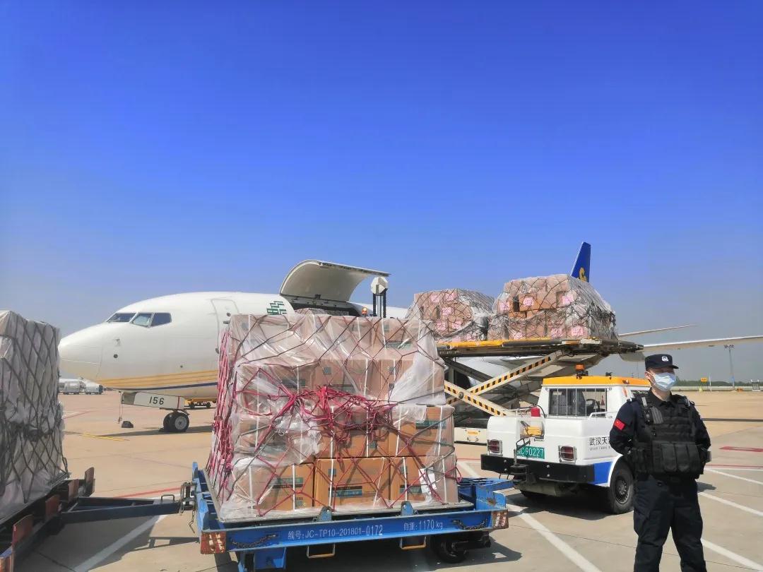 湖北省捐贈物資裝上郵航包機(jī)。