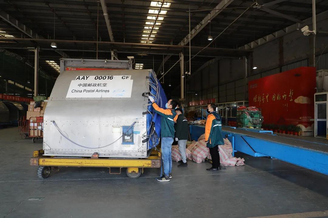 牡丹江郵政員工準(zhǔn)備就緒,等待郵航包機(jī)到來。