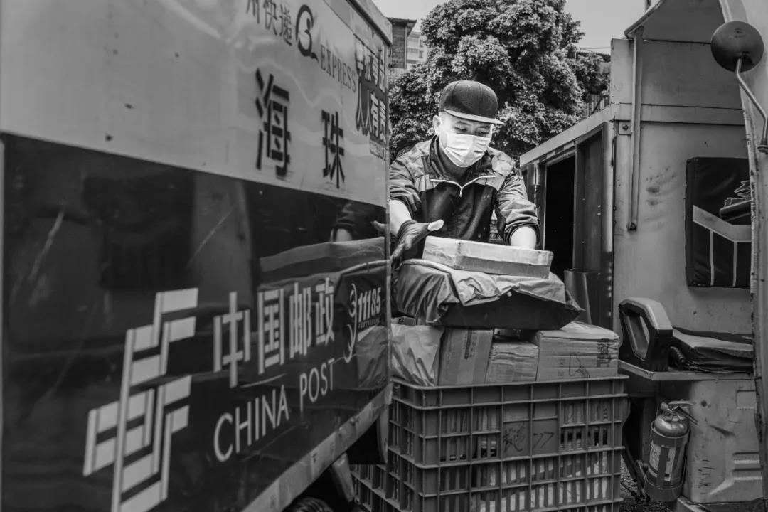 自疫情發(fā)生以來(lái),廣州郵政人從沒(méi)有停止過(guò)為人民群眾派送郵件報(bào)刊,一直踐行著“人民郵政為人民”的神圣使命。作品拍攝于2020年3月廣州市郵政分公司曉港西馬路投遞部作業(yè)現(xiàn)場(chǎng)。