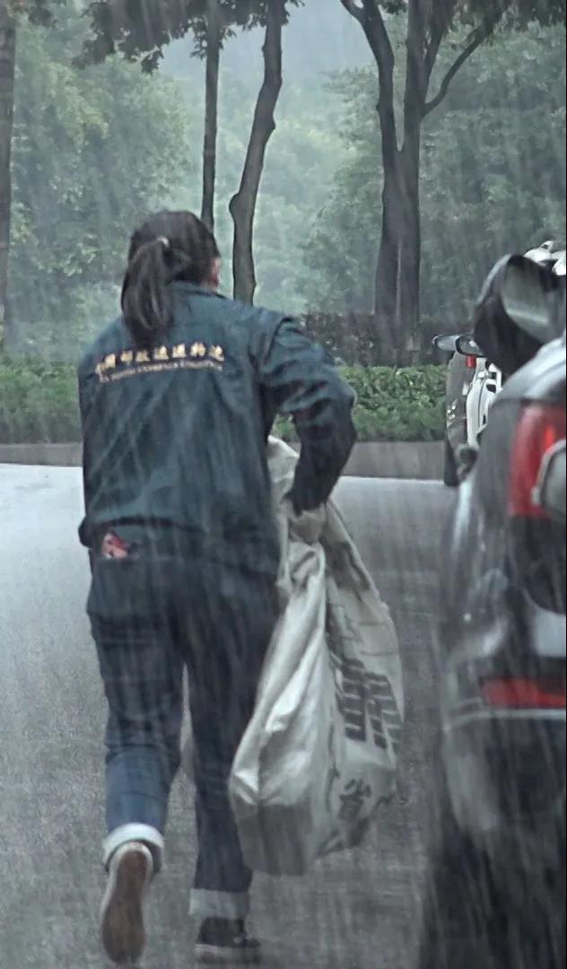 3月5日,重慶江北郵政寄遞事業(yè)部運(yùn)管部投遞員陳俊蘭在投遞教材過程中突降大雨,為確保時(shí)限,陳俊蘭冒雨迅速轉(zhuǎn)移教材。