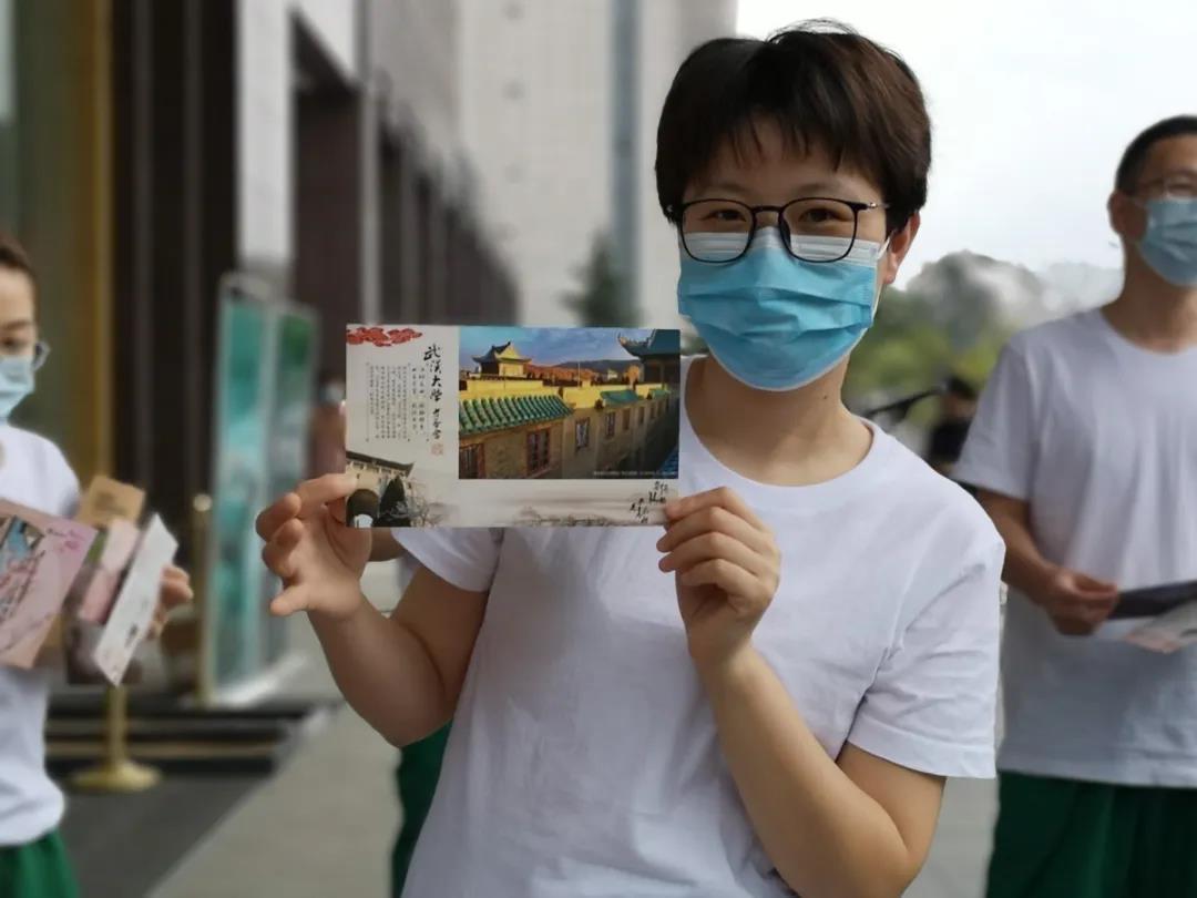 3月26日下午,人民日報新媒體中心、武漢市郵政分公司、武漢武昌區(qū)疫情防控指揮部共同舉辦“同舟共濟(jì) 感恩有您”為援漢醫(yī)療隊贈“文”活動,醫(yī)療隊員們對武漢風(fēng)光明信片愛不釋手。圖為醫(yī)療隊員展示自己最喜歡的武漢大學(xué)明信片。