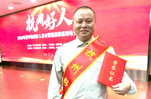 5月26日上午,浙江省杭州市余杭區(qū)郵政分公司良渚分局投遞員向達(dá)勇參加2020年首季“杭州好人”發(fā)布暨道德模范現(xiàn)場交流活動(dòng),并接受表彰。向達(dá)勇是湖南人,今年51歲,是余杭區(qū)良渚分局一名普通投遞員。2019年11月19日在投遞途中救起一位落水女子后默默離開。新華社、《人民日報(bào)》、央視新聞、浙江衛(wèi)視等十余家中央、省、市級媒體紛紛報(bào)道了《三年前兒子不幸溺水身亡 三年后他用臂彎托起一條生命》的文章,為向師傅的大愛點(diǎn)贊。 □韓穎 攝影報(bào)道