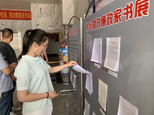 6月15日,“邢臺郵政廉政家書”展板在河北省邢臺市郵政分公司一樓大廳展出,吸引不少郵政員工前來閱讀。