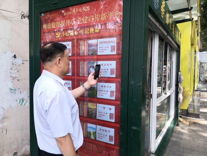 用手機掃描郵政報刊亭上二維碼,聆聽黨的聲音。南陽市七一路與梅溪路交叉口的“郵政數(shù)媒報刊亭”升級正式完成,為我市搭建了新的黨建知識學習平臺。