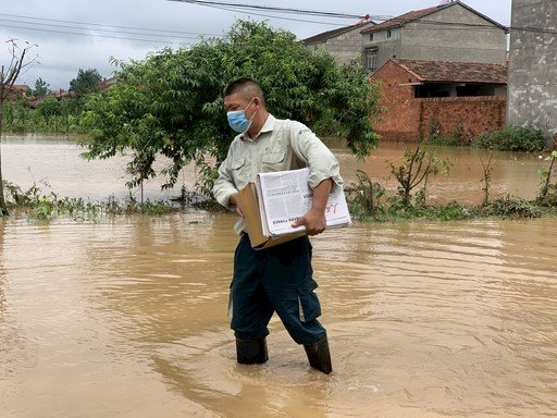 各地郵政實(shí)行24小時(shí)值班制,加強(qiáng)對(duì)地勢低洼營業(yè)網(wǎng)點(diǎn)、投遞站等場地滯水情況的排查;密切關(guān)注氣象部門的預(yù)報(bào)預(yù)警,對(duì)自行組開的郵路加強(qiáng)GPS監(jiān)測管控,確保郵路安全暢通;郵政員工堅(jiān)守一線,全力保障郵政通信生產(chǎn)正常運(yùn)行。圖為湖北省宜城市鄧林郵政支局投遞員趙斌涉水投送,確保郵件不延誤?! 趵钊珯?quán) 攝影報(bào)道