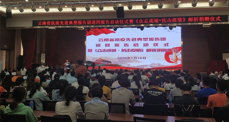 2020年7月16日,云南省抗疫先進(jìn)典型報(bào)告團(tuán)巡回報(bào)告啟動(dòng)儀式暨《眾志成城抗擊疫情》郵折捐贈(zèng)儀式在昆明醫(yī)科大學(xué)第二附屬醫(yī)院舉行。