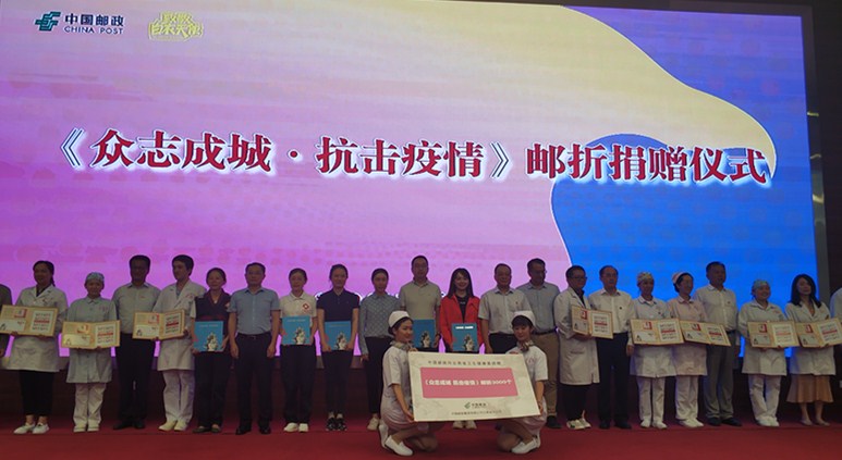 活動(dòng)中還舉行了《眾志成城?抗擊疫情》郵折捐贈(zèng)活動(dòng),一直以來(lái),中國(guó)郵政堅(jiān)持以發(fā)行郵票的方式紀(jì)念、支援國(guó)家發(fā)生的重大災(zāi)害、重大疫情,并將郵票發(fā)行收入捐獻(xiàn)用于救災(zāi)抗疫。此次中國(guó)郵政將向中國(guó)紅十字會(huì)總會(huì)捐贈(zèng)郵票和郵品收入2800萬(wàn)元,向奮戰(zhàn)在抗擊疫情一線的近30萬(wàn)名醫(yī)務(wù)工作者捐贈(zèng)價(jià)值1500萬(wàn)元的定制郵折,共計(jì)4300萬(wàn)元。這是近年來(lái)中國(guó)郵政發(fā)行抗疫救災(zāi)郵票捐贈(zèng)額最高的一次。本次捐贈(zèng)儀式上,中國(guó)郵政集團(tuán)有限公司云南省分公司向云南省衛(wèi)生健康委捐贈(zèng)《眾志成城 抗擊疫情》郵折3000個(gè)。