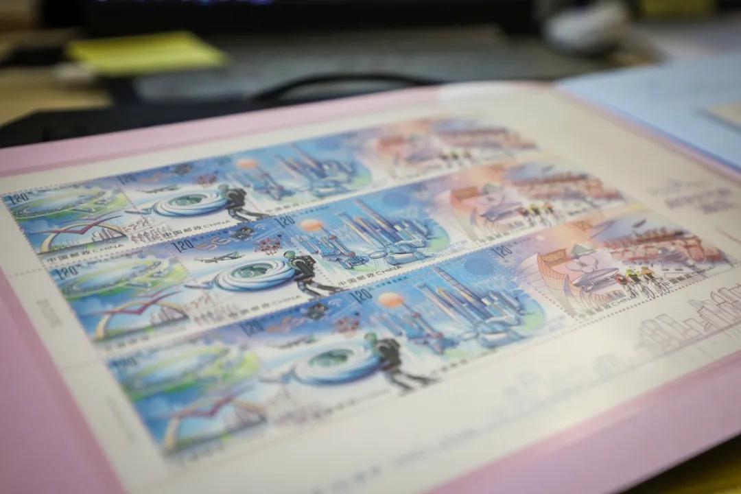 據(jù)了解,該套郵票采用高精度調(diào)頻加網(wǎng)技術(shù)印制,運(yùn)用冷燙、全彩熒光工藝對郵票進(jìn)行渲染,使郵票圖案層次更加分明,在陽光下冷燙圖文反射出七彩的光澤感,紫光燈下郵票呈現(xiàn)出絢麗的全彩熒光效果,生動(dòng)演繹了上海浦東30年來的發(fā)展成就。