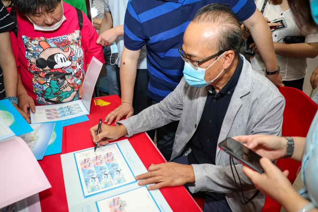 活動(dòng)現(xiàn)場,郵票設(shè)計(jì)師韓秉華為廣大上海郵迷簽名留念,上海郵政提供郵品銷售、加蓋紀(jì)念戳等郵政服務(wù)。中國郵政集團(tuán)有限公司郵政業(yè)務(wù)部總經(jīng)理王志奇、上海市浦東新區(qū)區(qū)委宣傳部部長唐勁松出席本次活動(dòng),并共同為郵票首日封揭幕。
