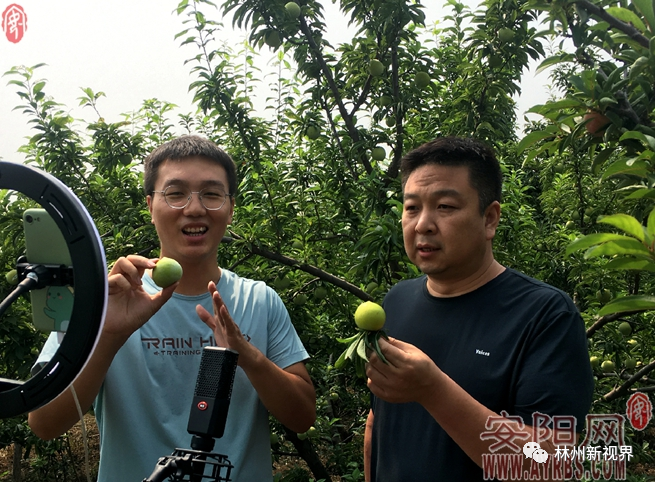 林州市郵政公司工作人員在果園直播銷售李子(?;蹟z)