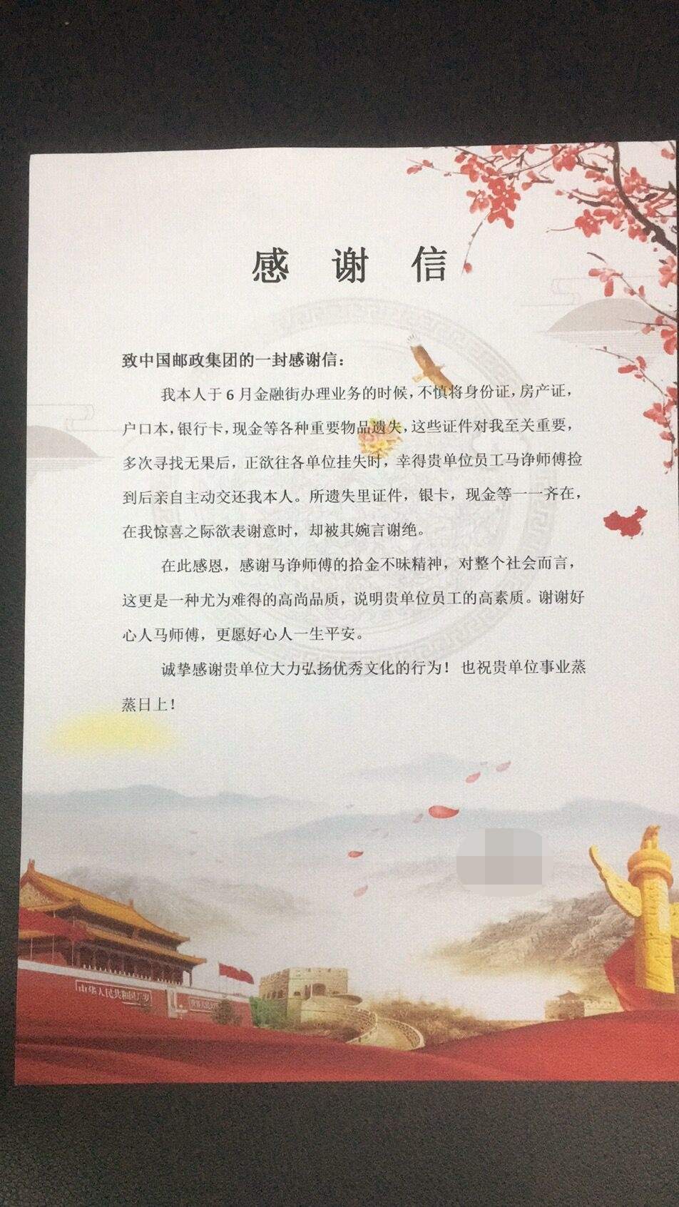 就在前幾天,一位手拿錦旗的用戶來到了西城區(qū)西單支局金融街營(yíng)業(yè)部的門前,點(diǎn)名要找郵政小哥馬諍師傅。