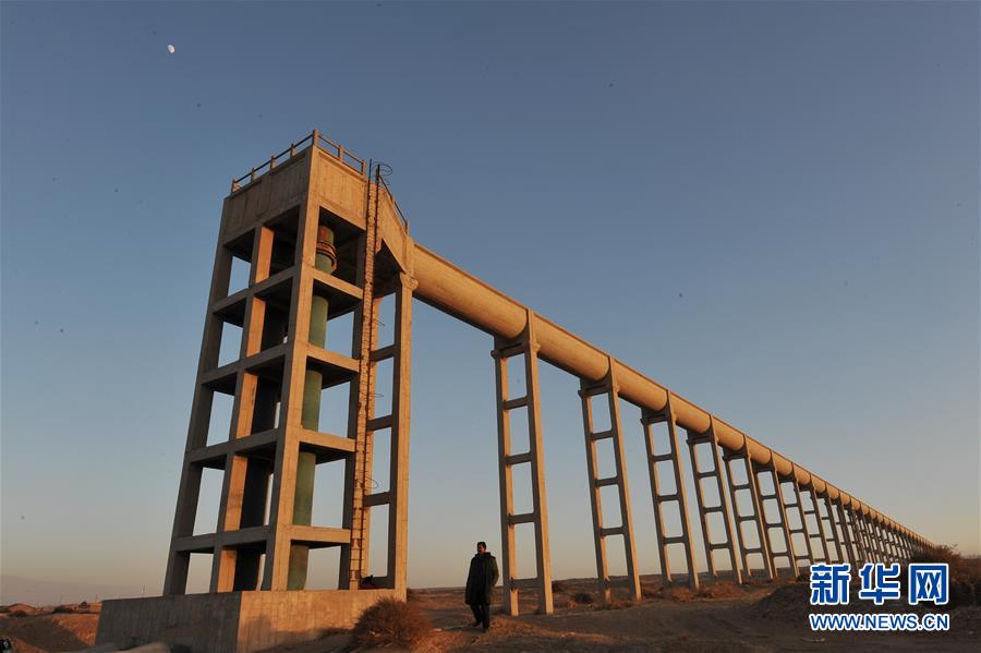 這是位于紅寺堡境內(nèi)的寧夏扶貧揚黃灌溉工程泵站輸水管道(2009年12月27日攝)。 新華社記者 王鵬 攝