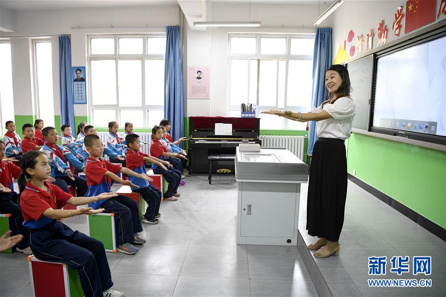 寧夏吳忠市紅寺堡區(qū)紅寺堡中心小學(xué)學(xué)生在上音樂課(7月3日攝)。 新華社記者 馮開華 攝