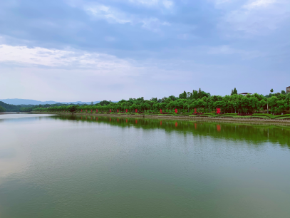 一帶澄澈碧綠的河水緩緩流淌,岸邊樹木蔥蘢、綠草如茵。有畫者在依河寫生,有行者在閑適漫步,不遠處嘹亮悠長的嗩吶聲隨風(fēng)飄揚。