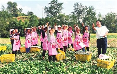 張武和菜農(nóng)們一起,在菜地里上演一場時(shí)尚大氣的圍裙秀?!觞S倩 攝