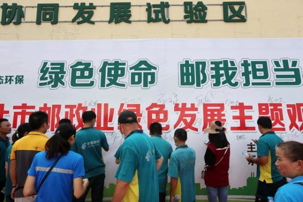 8月13日,快遞企業(yè)工作人員在安徽省淮北市郵政業(yè)綠色發(fā)展主題觀摩現(xiàn)場(chǎng)集中簽名。本報(bào)通訊員 萬善朝 攝
