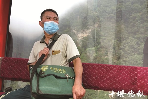 8月5日,星期三。上午9點半,在云霧繚繞的武當山索道吊箱內(nèi),57歲的武當山郵政支局郵遞員齊建國隨著勻速上升的吊箱,穿過茫茫云海,直奔金頂。