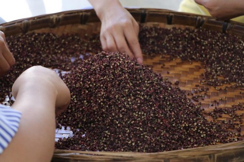漢源椒農(nóng)采摘花椒一般選在晴天,采收的椒果干制后,色澤鮮、香氣濃、麻味足。采收技巧也非常有講究,需一穗穗小心摘下,否則壓破花椒油胞,花椒干制后就色澤暗褐,香麻味減,影響花椒質(zhì)量,可以說(shuō),每一粒精心采收的花椒里,都飽含著椒農(nóng)對(duì)收獲的喜悅和珍惜。