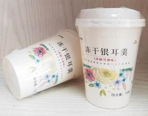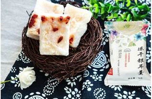 “古江”沖泡即食銀耳羹,選用古田新鮮銀耳,并采用優(yōu)質(zhì)原料,輔料經(jīng)過熟制工藝,經(jīng)過先進的FD凍干技術制作而成。生產(chǎn)工藝既保留了鮮燉銀耳的色、香、味、形,又不破壞銀耳本身的營養(yǎng)物質(zhì),使得產(chǎn)品具有食用方便、口感好等特點?!肮沤便y耳羹不添加防腐劑、香精和色素,是一道純天然的食材,銀耳羹中還加入了雪梨、紅棗和枸杞,味道濃香軟糯、甘甜可口,具有較高的營養(yǎng)價值。
