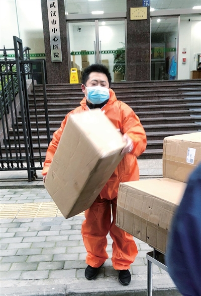 抗疫關頭,徐龍為醫(yī)院投遞防疫物資。