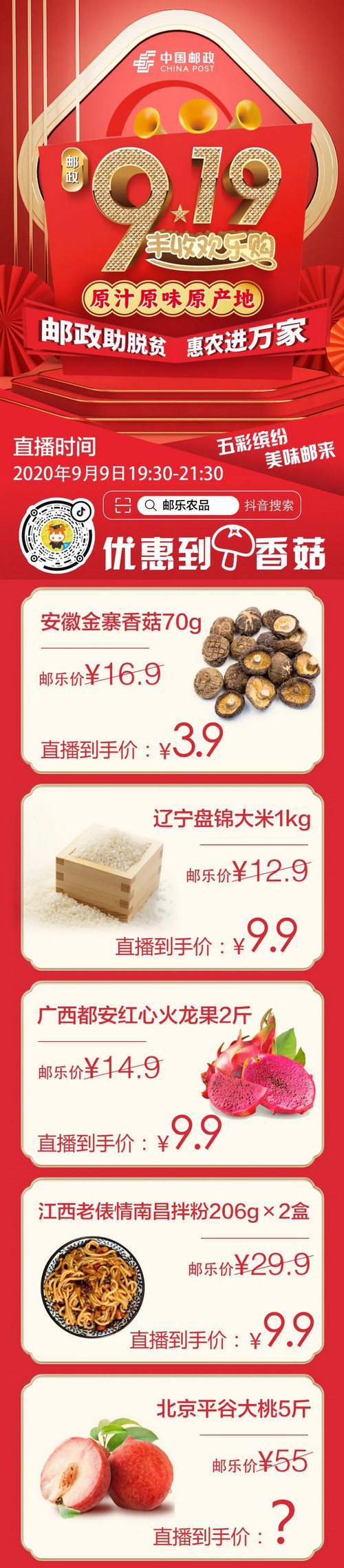 中國郵政919電商節(jié)首場預(yù)熱直播來啦!