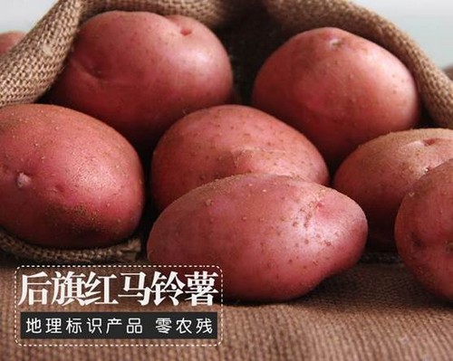 “后旗紅”土豆是馬鈴薯的一個(gè)品種,因種植在中國薯都烏蘭察布察右后旗而得名?!昂笃旒t”馬鈴薯種植基地位于察哈爾火山地質(zhì)公園火山群下,北緯41度。采用微噴方式,水源來自150米火山巖下深層礦泉水。其產(chǎn)地烏蘭察布察哈爾右翼后旗,地屬溫帶大陸性季風(fēng)氣候,無霜期短、晝夜溫差大,降雨集中在馬鈴薯生長期季節(jié),雨熱同季,土壤為沙性土,為馬鈴薯生長提供了得天獨(dú)厚的優(yōu)越條件。
