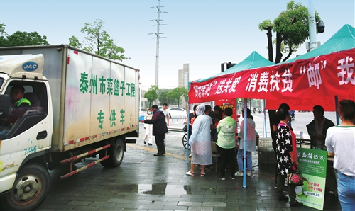 泰州郵政與泰州農(nóng)業(yè)農(nóng)村局聯(lián)合舉辦“新型農(nóng)業(yè)經(jīng)營(yíng)主體農(nóng)副產(chǎn)品社區(qū)行”公益助農(nóng)活動(dòng)?!踔苋悍?攝
