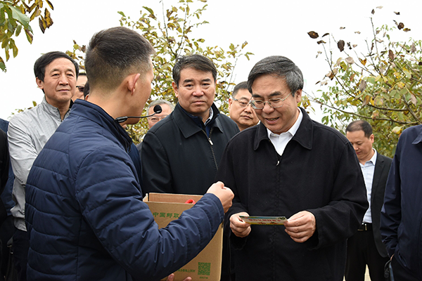 圖為2019年10月17日,劉愛(ài)力一行來(lái)到陜西商洛進(jìn)行實(shí)地調(diào)研,了解集團(tuán)公司定點(diǎn)扶貧項(xiàng)目的進(jìn)展情況。