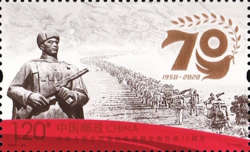 中國郵政定于10月25日發(fā)行《中國人民志愿軍抗美援朝出國作戰(zhàn)70周年》紀(jì)念郵票一套1枚。