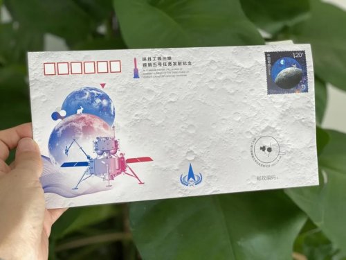 11月24日4時(shí)30分,長(zhǎng)征五號(hào)遙五運(yùn)載火箭在中國(guó)文昌航天發(fā)射場(chǎng)點(diǎn)火升空,成功發(fā)射探月工程嫦娥五號(hào)探測(cè)器,火箭飛行約2200秒后,順利將探測(cè)器送入預(yù)定軌道,開啟我國(guó)首次地外天體采樣返回之旅。為紀(jì)念這一歷史時(shí)刻,中國(guó)集郵總公司發(fā)行紀(jì)念封一枚。
