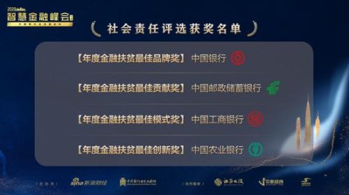 12月11日,“2020中國銀行業(yè)發(fā)展論壇智慧金融(北京)峰會(huì)暨第八屆銀行綜合評(píng)選頒獎(jiǎng)典禮”召開。中國郵政儲(chǔ)蓄銀行獲“年度金融扶貧最佳貢獻(xiàn)獎(jiǎng)”。