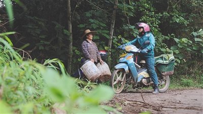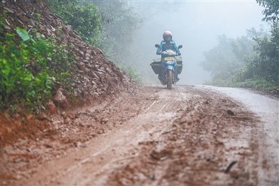 上坡、下坡、再上坡……由于當(dāng)天大霧加上小雨,盡管符蓮香對這條路熟悉得不能再熟悉,但為了將郵包完好無損地送到村民手中,她騎得比平時更加小心。