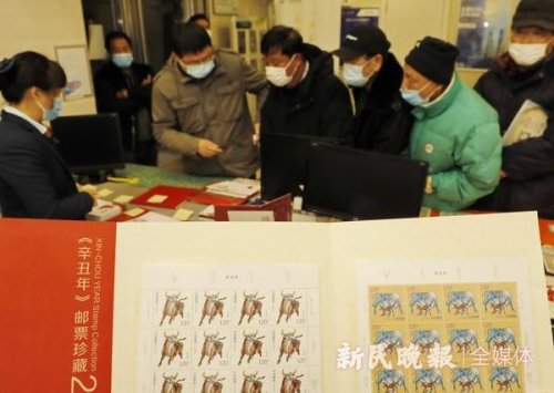 圖為在中國(guó)郵政上海金山區(qū)石化郵政支局營(yíng)業(yè)大廳,集郵愛(ài)好者在排隊(duì)購(gòu)買《辛丑年》特種郵票