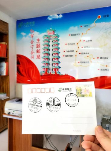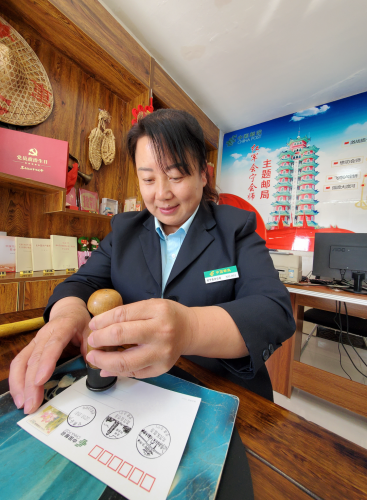 近年來,甘肅白銀市和會寧縣努力打造紅色文化,當?shù)剜]政成立了會寧會師主題郵局,開發(fā)了會師主題郵品,通過郵品宣傳、傳承會師精神。一位騎行到會寧的騎友特意來到主題郵局,在會寧會師明信片上蓋上郵戳,并將明信片投入郵筒?!霸诿餍牌仙w上郵戳,才算是真正到會寧打卡過,看見明信片就會想起紅軍會寧會師這段歷史?!?/p>