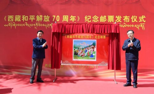 在西藏各族人民喜迎西藏和平解放70周年之際,8月16日,《西藏和平解放70周年》紀(jì)念郵票發(fā)布儀式在拉薩舉行。西藏自治區(qū)副主席甲熱·洛桑丹增,中國(guó)郵政集團(tuán)有限公司黨組書記、董事長(zhǎng)劉愛(ài)力致辭,并共同為《西藏和平解放70周年》紀(jì)念郵票揭幕。中國(guó)郵政集團(tuán)有限公司副總經(jīng)理康寧,西藏自治區(qū)、集團(tuán)公司相關(guān)部門負(fù)責(zé)同志出席。