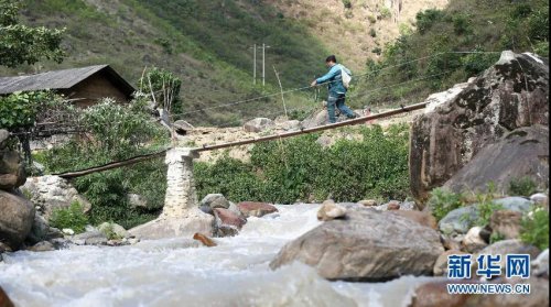 桑南才送郵件途中經(jīng)過獨木橋 劉東 攝